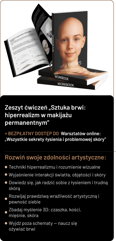 BEZPŁATNIE z książką „Sztuka brwi: hiperrealizm w PMU” To coś więcej niż tylko warsztaty — to poradnik przetrwania w ekstremalnych sytuacjach.