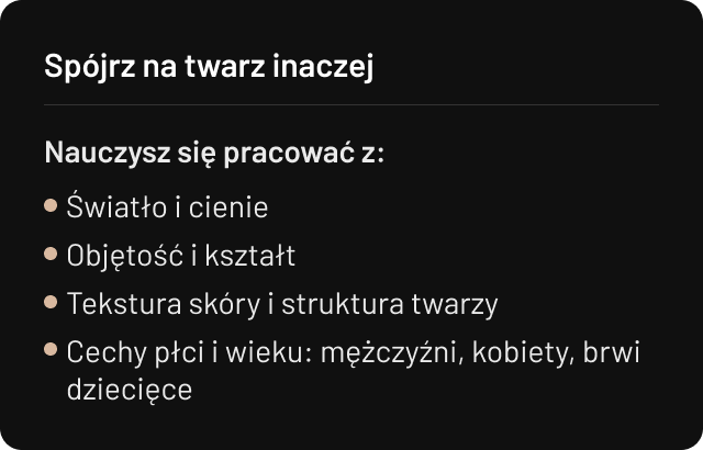 Zrozum strukturę łuku brwiowego, relief czoła i logikę kształtu.