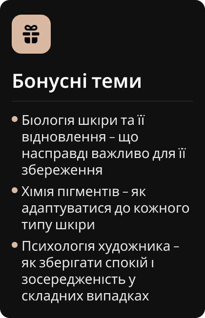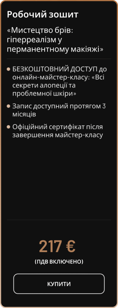 Я не просто тренер — я художник, одержимий структурою, красою та правдою в кожному мазку. За останні 18 років я розробив техніки, які стали основою для тисяч майстрів перманентного макіяжу по всьому світу.